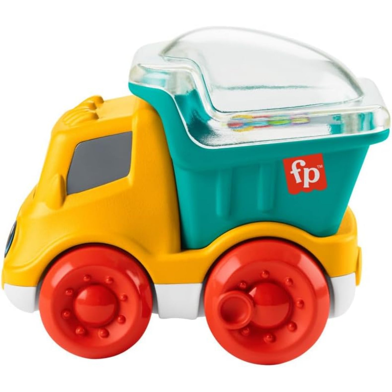 - Adorable push-along toy dump truck with colorful balls that pop around as the vehicle rolls along