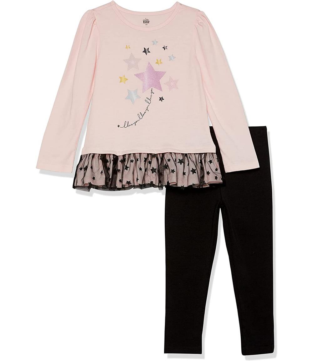 - A necessity for any kids' wardrobe, featuring a 2 piece legging set that's perfect for both lounging on a lazy day and active play.