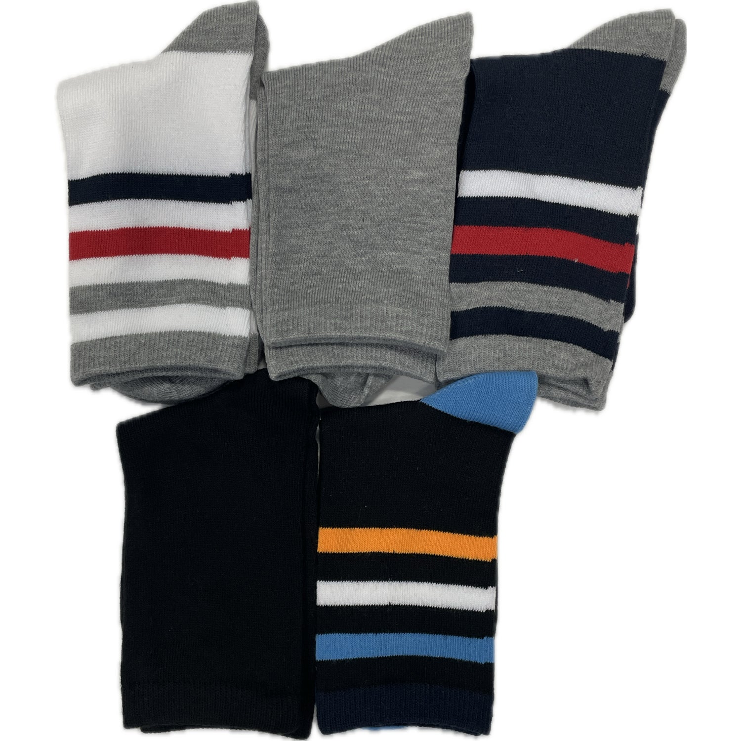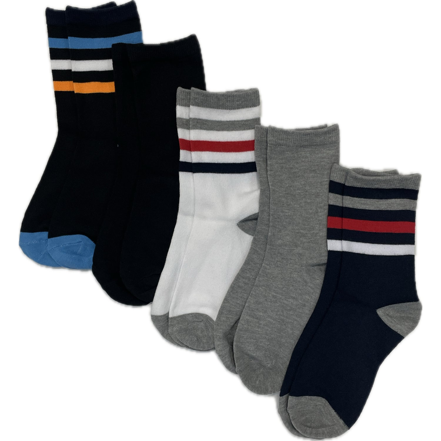 - Boys 5 Pack Crew Length Stripe Socks