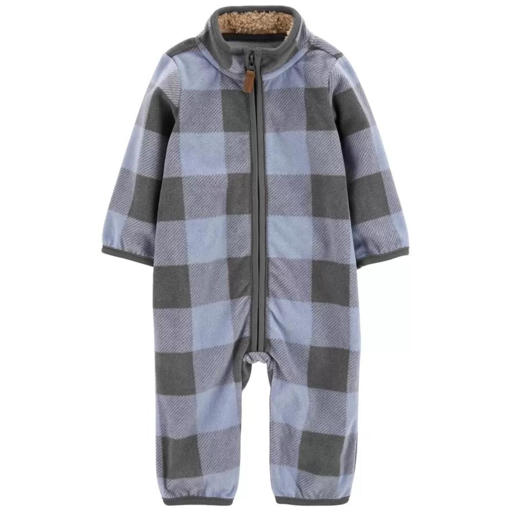Complete with long cozy sleeves and allover plaid, this jumpsuit gets baby out the door in a snap.