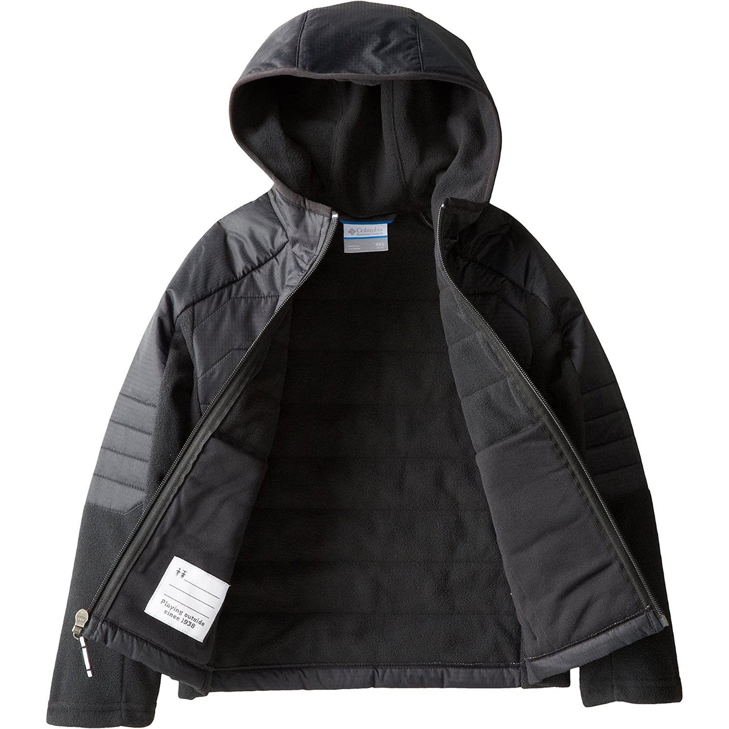 A toasty-warm insulated fleece with water repellent protection in the rain strike zones (body, hood and shoulders), the Fast Trek Hybrid packs coziness, clean alpine style and weatherproof performance.