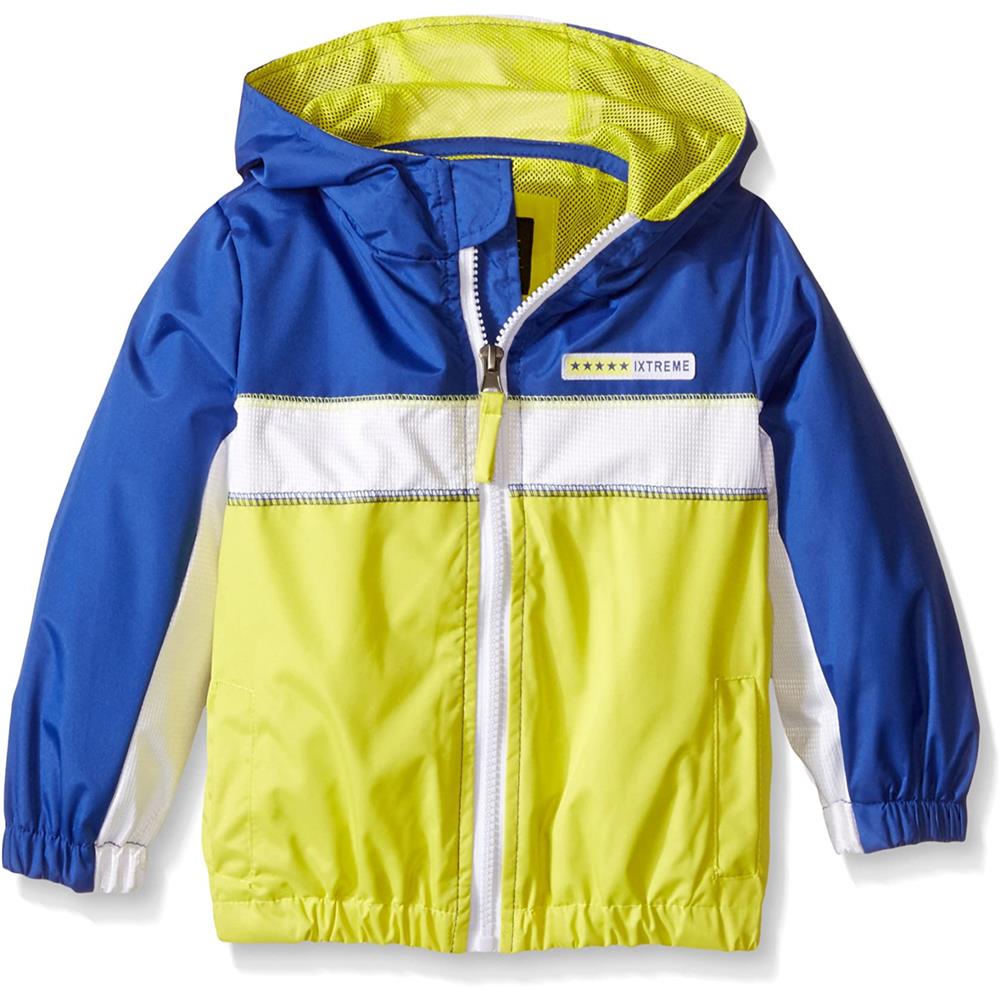 This color block athletic jacket is perfect for spring time! Hooded and water resistant with an elastic waistband, your little guy will stay dry, comfortable, and stylish!