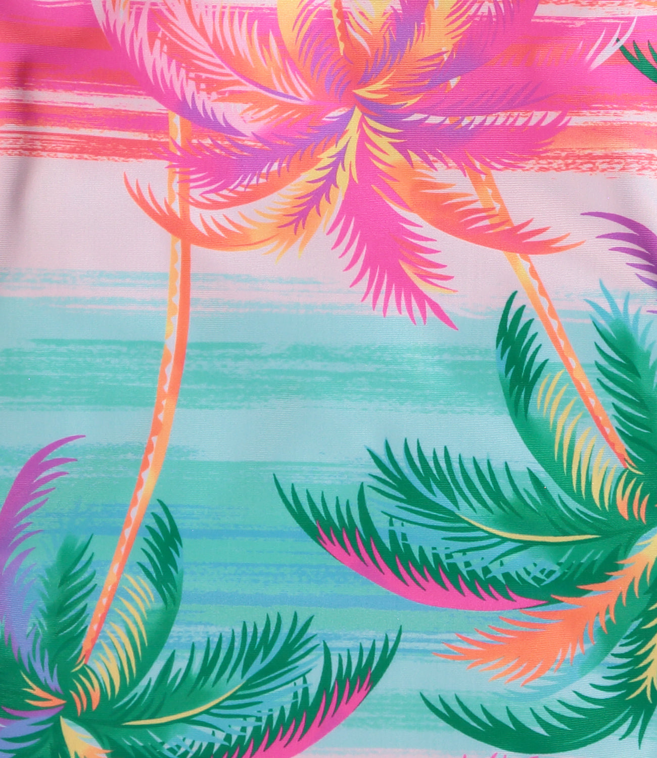 - One Piece Palm Tree Swimsuit with Back Cut Out and Small Tie Detail