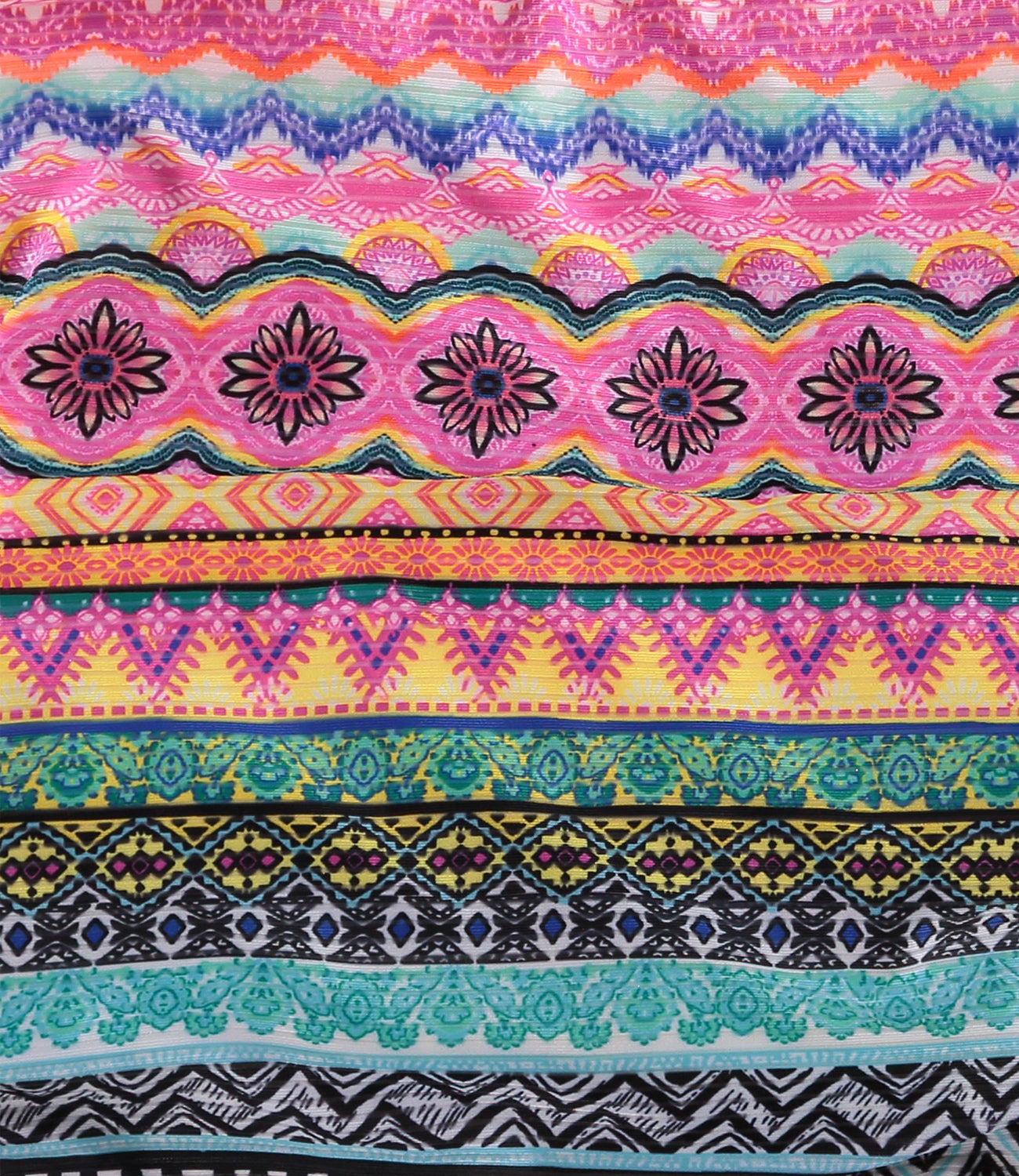 • One Piece Tribal Swimsuit with Front Cut Out and Small Bow Detail