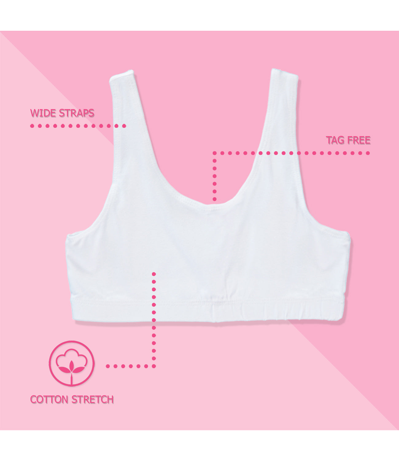 • Girls Bralette Features: Stretchable Fabric for a Comfortable and Secure Fit, Elastic Bra Band at Bottom, and Thick, Secure Straps.