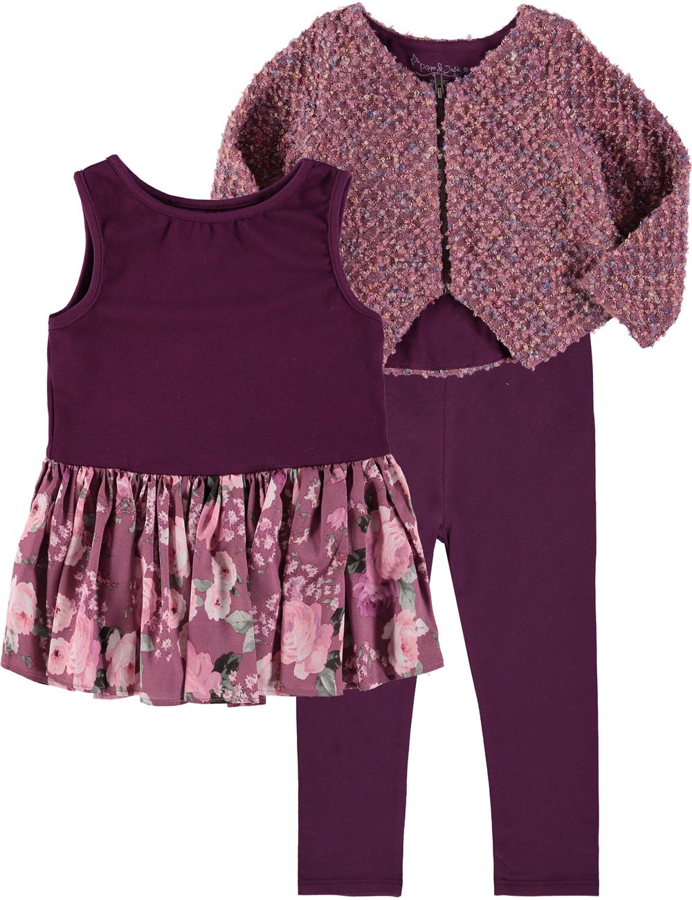 - 3-Piece Set Includes Matching Sweater with Zip Front