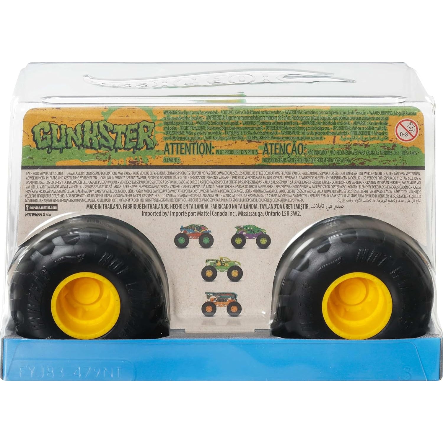 Mattel Hot Wheels Monster Trucks, Oversized Monster Truck, 1:24 Scale Die-Cast Toy Truck with Giant Wheels and Cool Designs - Gunkster