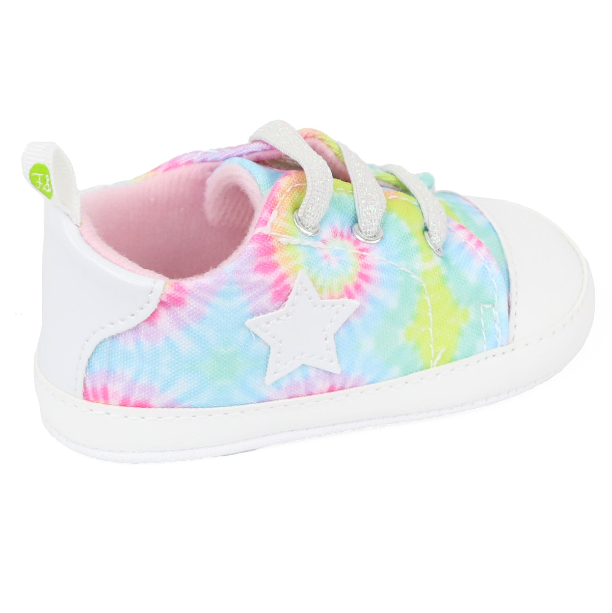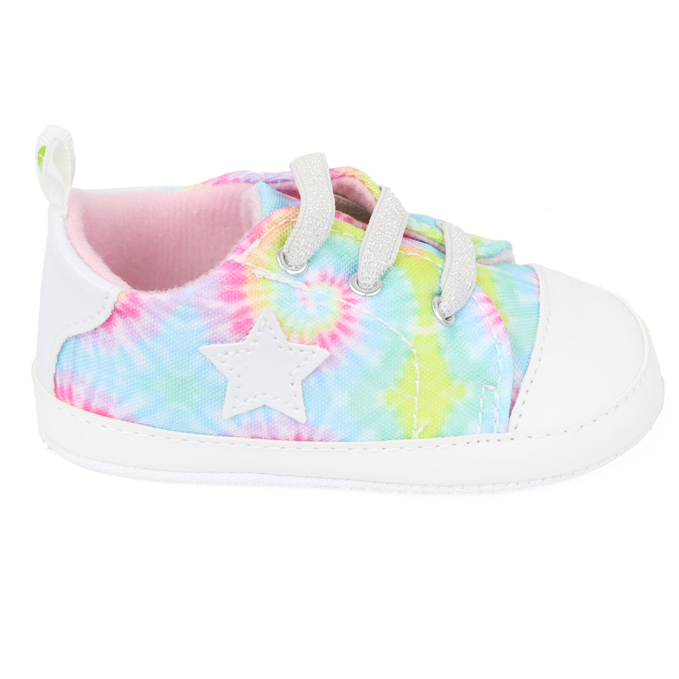 - In-Style Tie Dye Print All Over Shoe with Cute Detailing; The Perfect Little Sneaker for your New Baby.